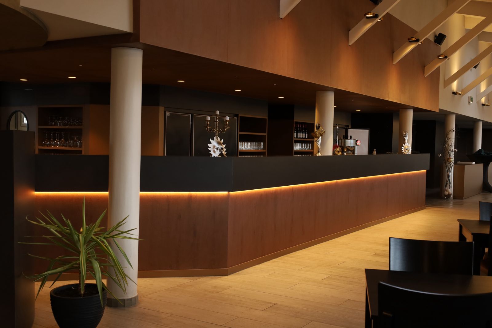 Onze ruime ontvangstruimtes van 413 m² en 126 m², samen met het 87 m² grote terras met uitzicht op het meer, zijn perfect voor seminars, vergaderingen, conferenties of privéfeesten.
